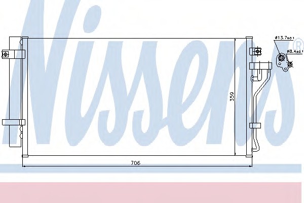 Nissens 940099 Радиатор кондиционера HYUNDAI: AZERA 2.2CRDi 06-11, GRANDEUR (TG) 2.2CRDi 06-11, NF V (NF) 2.0CRDi 06-10, SONATA V (NF) 2.0CRDi 05-10, SONICA 2.0CRDi 05-10 (с осушителем)